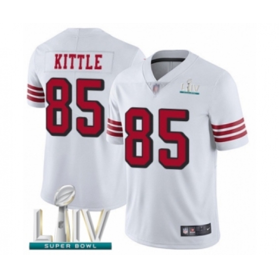 >Youth San Francisco 49ers #85 George Kittle Limited White Rush Vapor Untouchable Super Bowl LIV Bound Football Jersey