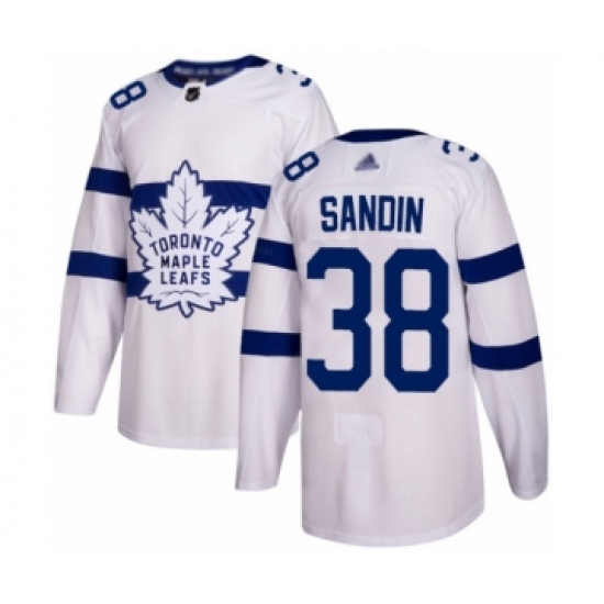 >Youth Toronto Maple Leafs #38 Rasmus Sandin Authentic White 2018 Stadium Series Hockey Jersey