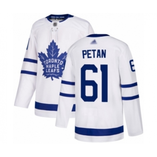 >Youth Toronto Maple Leafs #61 Nic Petan Authentic White Away Hockey Jersey