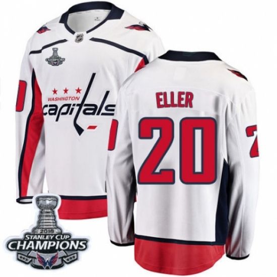 Youth Washington Capitals #20 Lars Eller Fanatics Branded White Away Breakaway 2018 Stanley Cup Final Champions NHL Jersey