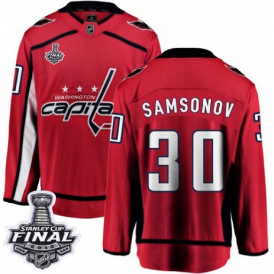 Men's Adidas Washington Capitals #30 Ilya Samsonov Authentic Red Home 2018 Stanley Cup Final Champions NHL Jersey