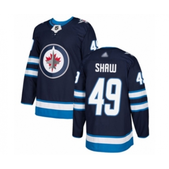 >Youth Winnipeg Jets #49 Logan Shaw Authentic Navy Blue Home Hockey Jersey