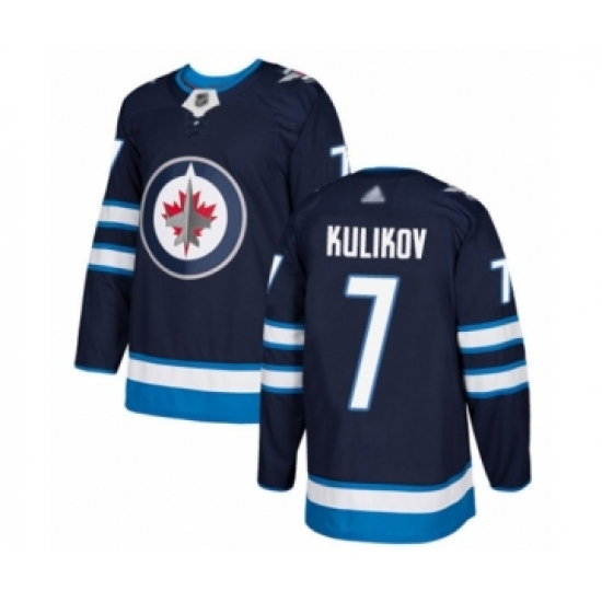 >Youth Winnipeg Jets #7 Dmitry Kulikov Authentic Navy Blue Home Hockey Jersey