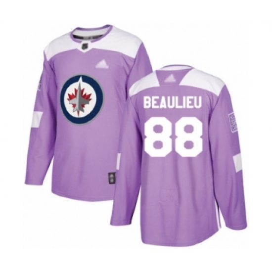 Men's Winnipeg Jets #88 Nathan Beaulieu Authentic Purple Fights Cancer Practice Hockey Jersey