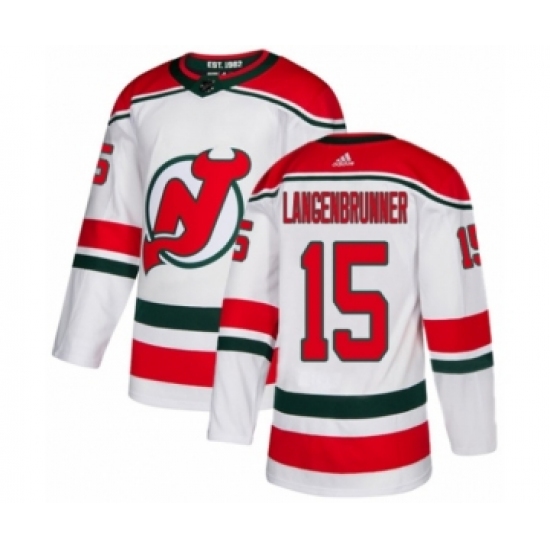 Youth Adidas New Jersey Devils #15 Jamie Langenbrunner Authentic White Alternate NHL Jersey