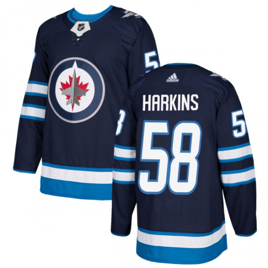 Home>NHL>Winnipeg Jets>Jansen Harkins>Men's Adidas Winnipeg Jets #58 Jansen Harkins Authentic Navy Blue Home NHL Jersey