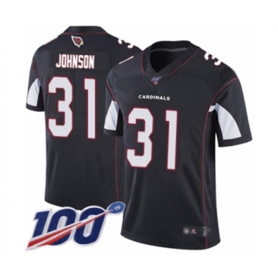 >Men's Arizona Cardinals #31 David Johnson Black Alternate Vapor Untouchable Limited Player 100th Season Football Jersey