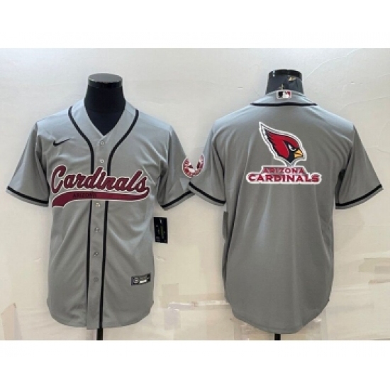 >Men's Arizona Cardinals Grey Team Big Logo With Patch Cool Base Stitched Baseball Jersey