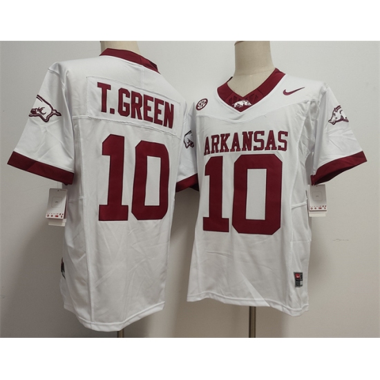 Men's Arkansas Razorbacks #10 TAYLEN GREEN White 2025 F.U.S.E. Vapor Limited Stitched Football Jersey