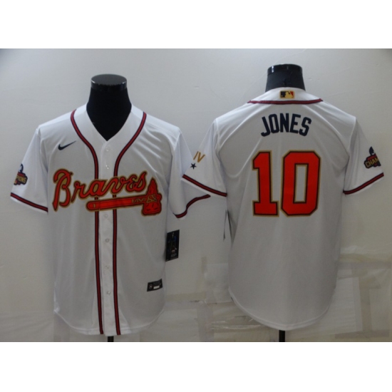 Men's Atlanta Braves #10 Chipper Jones Nike White 2022 Gold Program Authentic Player Jersey