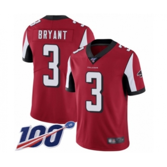 >Men's Atlanta Falcons #3 Matt Bryant Red Team Color Vapor Untouchable Limited Player 100th Season Football Jersey