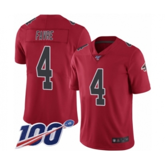 >Men's Atlanta Falcons #4 Brett Favre Limited Red Rush Vapor Untouchable 100th Season Football Jersey