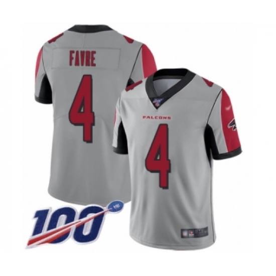 Men's Atlanta Falcons #4 Brett Favre Limited Silver Inverted Legend 100th Season Football Jersey
