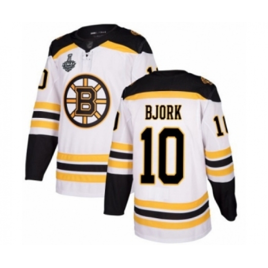 Men's Boston Bruins #10 Anders Bjork Authentic White Away 2019 Stanley Cup Final Bound Hockey Jersey