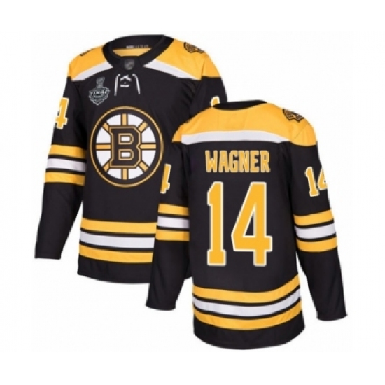 >Men's Boston Bruins #14 Chris Wagner Authentic Black Home 2019 Stanley Cup Final Bound Hockey Jersey