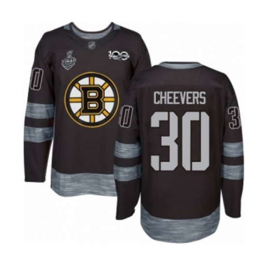 Men's Boston Bruins #30 Gerry Cheevers Authentic Black 1917-2017 100th Anniversary 2019 Stanley Cup Final Bound Hockey Jersey