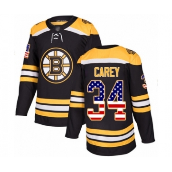 >Men's Boston Bruins #34 Paul Carey Authentic Black USA Flag Fashion Hockey Jersey