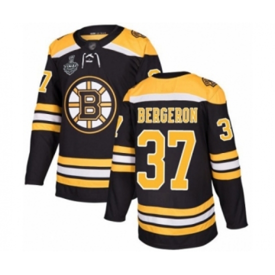 Men's Boston Bruins #37 Patrice Bergeron Authentic Black Home 2019 Stanley Cup Final Bound Hockey Jersey