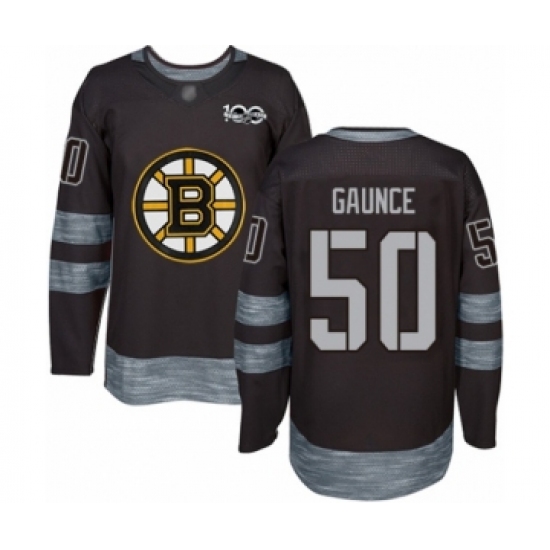 >Men's Boston Bruins #50 Brendan Gaunce Authentic Black 1917-2017 100th Anniversary Hockey Jersey