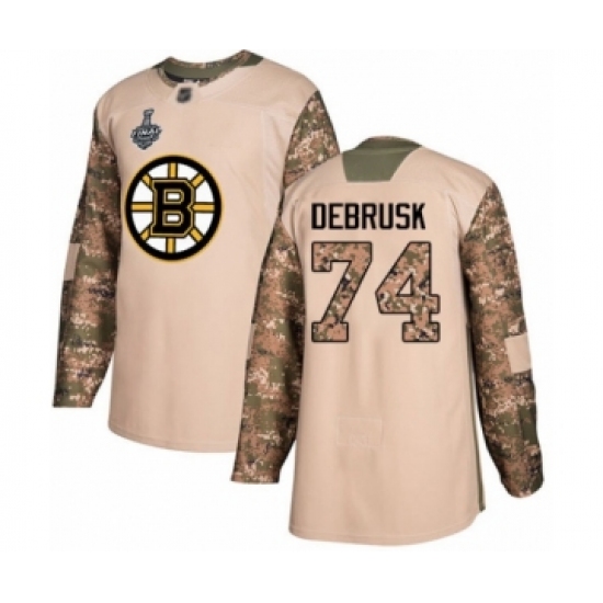 >Men's Boston Bruins #74 Jake DeBrusk Authentic Camo Veterans Day Practice 2019 Stanley Cup Final Bound Hockey Jersey