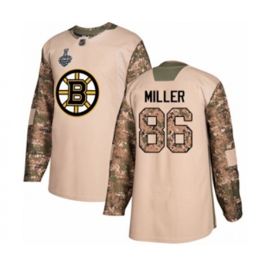 Men's Boston Bruins #86 Kevan Miller Authentic Camo Veterans Day Practice 2019 Stanley Cup Final Bound Hockey Jersey