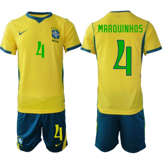 >Men's Brazil #4 MARQUINHOS National Team FIFA x World Cup 2026 Home On Field Jersey