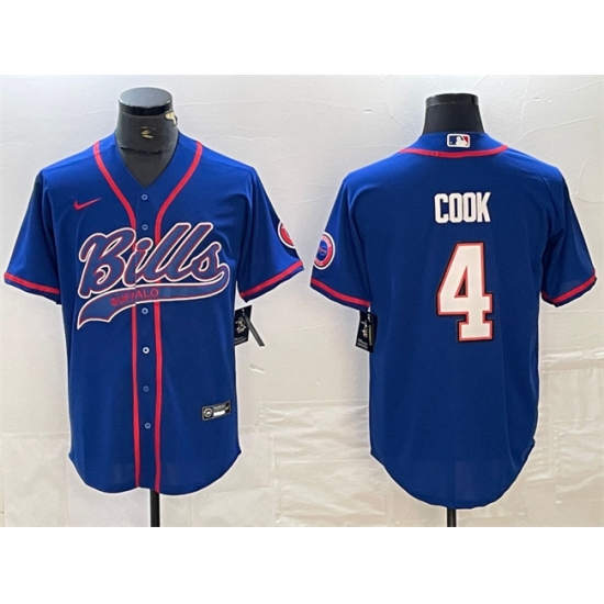 Men's Buffalo Bills #4 James Cook Blue With Cool Base Stitched Baseball Jersey