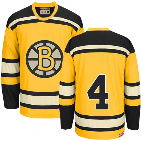 Men's CCM Boston Bruins #4 Bobby Orr Authentic Gold Throwback NHL Jersey