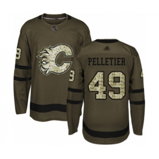>Men's Calgary Flames #49 Jakob Pelletier Authentic Green Salute to Service Hockey Jersey