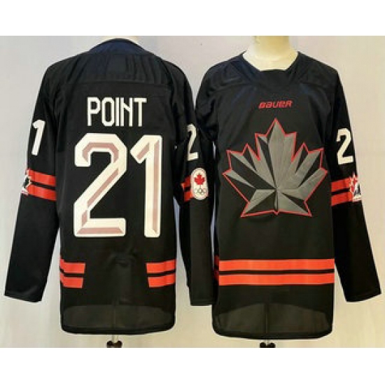 >Men's Canada Hockey #21 Brayden Point Black Stitched Jersey