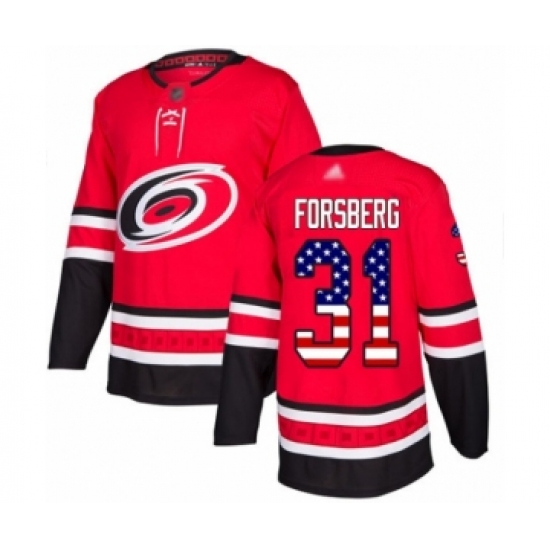 >Men's Carolina Hurricanes #31 Anton Forsberg Authentic Red USA Flag Fashion Hockey Jersey