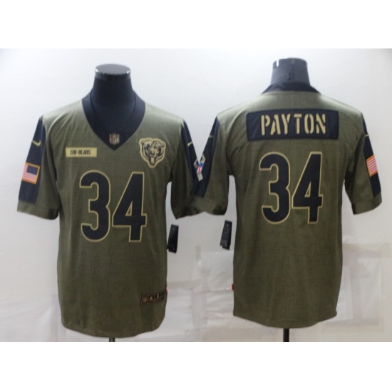 Men's Chicago Bears #34 Walter Payton Nike Olive 2021 Salute To Service Limited Player Jersey