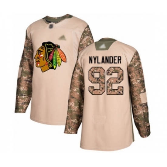 >Men's Chicago Blackhawks #92 Alexander Nylander Authentic Camo Veterans Day Practice Hockey Jersey