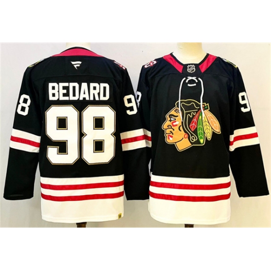 >Men's Chicago Blackhawks #98 Connor Bedard Black Stitched Hockey Jersey