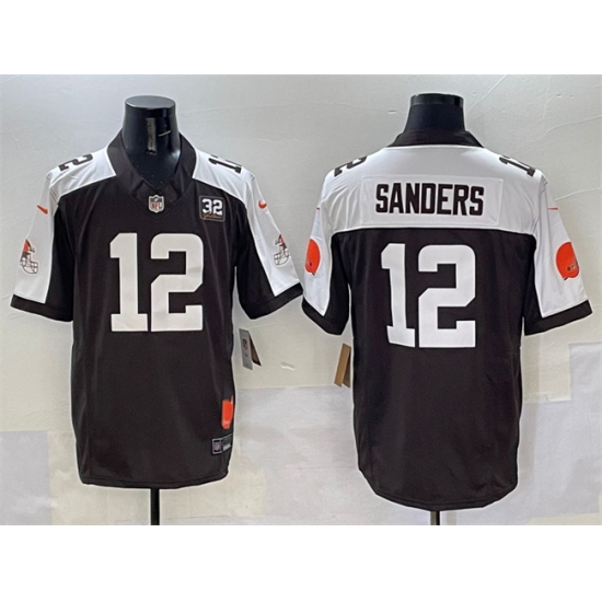 >Men's Cleveland Browns #12 Shedeur Sanders Brown White 2025 Draft F.U.S.E. With Jim Brown Memorial & Home Vapor Limited Football Stitched Jersey