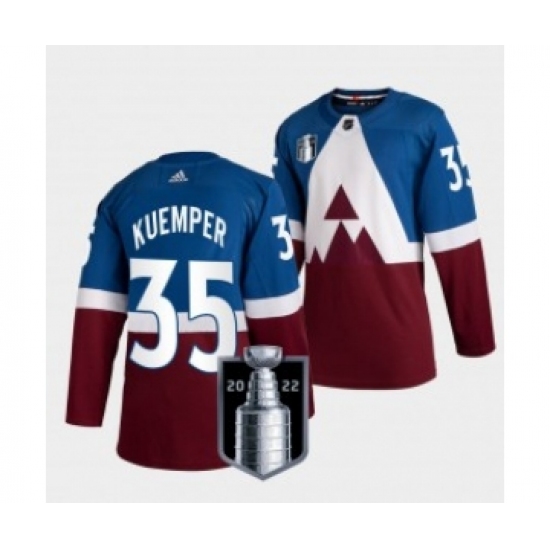 >Men's Colorado Avalanche ##35 Darcy Kuemper Blue 2022 Stanley Cup Final Patch Adidas Stitched NHL Jersey