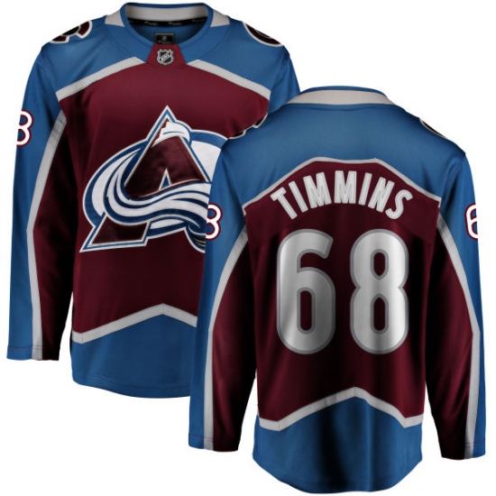 Home>NHL>Colorado Avalanche>Conor Timmins>Men's Colorado Avalanche #68 Conor Timmins Fanatics Branded Maroon Home Breakaway NHL Jersey