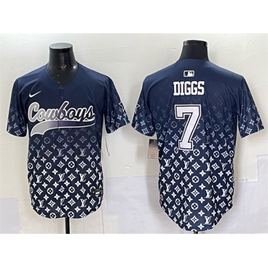 >Men's Dallas Cowboys #7 Trevon Diggs Navy Limited Stitched Baseball Jersey