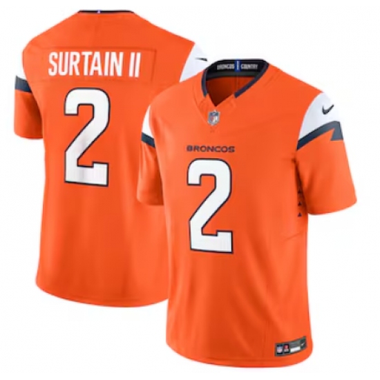Men's Denver Broncos #2 Patrick Surtain II Nike Orange 2021 NFL Draft First Round Pick Limited Jersey