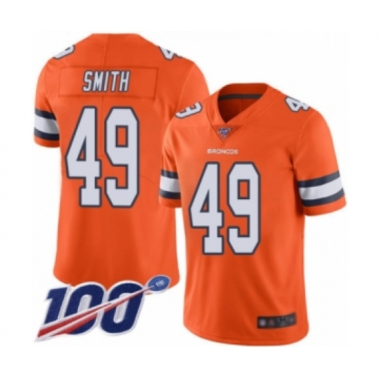 >Men's Denver Broncos #49 Dennis Smith Limited Orange Rush Vapor Untouchable 100th Season Football Jersey