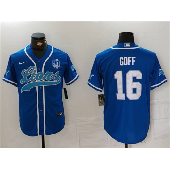 >Men's Detroit Lions #20 Barry Sanders Blue Cool Base Stitched Baseball Jersey