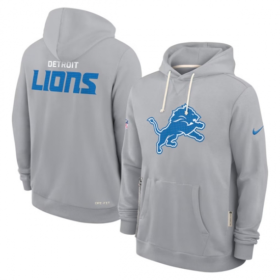 Men's Detroit Lions Gray Sideline Standard Issue Initial Home Dri-FIT Pullover Hoodie