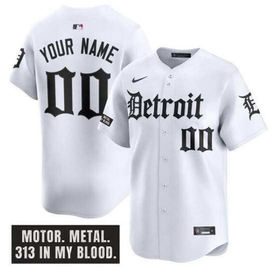 >Men's Detroit Tigers ACTIVE PLAYER Custom White 'Motor Gothic Edition' Vapor Premier Limited Stitched Baseball Jersey