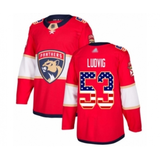Men's Florida Panthers #53 John Ludvig Authentic Red USA Flag Fashion Hockey Jersey