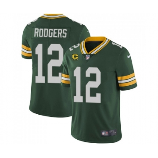 >Men's Green Bay Packers #12 Aaron Rodgers Green With 4-star C Patch Vapor Untouchable Stitched NFL Limited Jersey