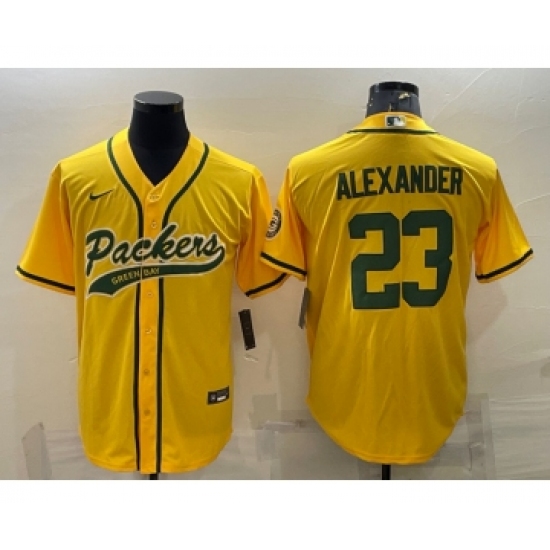 >Men's Green Bay Packers #23 Jaire Alexander Yellow With Patch Cool Base Stitched Baseball Jersey