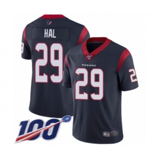 Men's Houston Texans #29 Andre Hal Navy Blue Team Color Vapor Untouchable Limited Player 100th Season Football Jersey