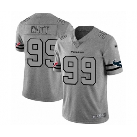>Men's Houston Texans #99 J.J. Watt Limited Gray Team Logo Gridiron Football Jersey