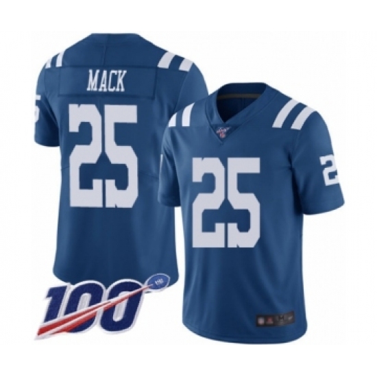 >Men's Indianapolis Colts #25 Marlon Mack Limited Royal Blue Rush Vapor Untouchable 100th Season Football Jersey