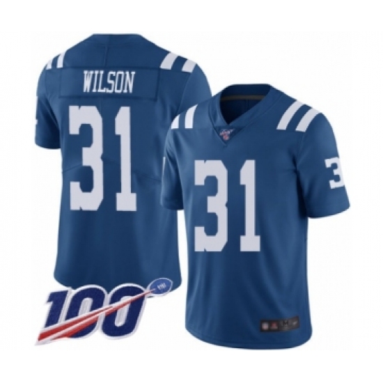 Men's Indianapolis Colts #31 Quincy Wilson Limited Royal Blue Rush Vapor Untouchable 100th Season Football Jersey